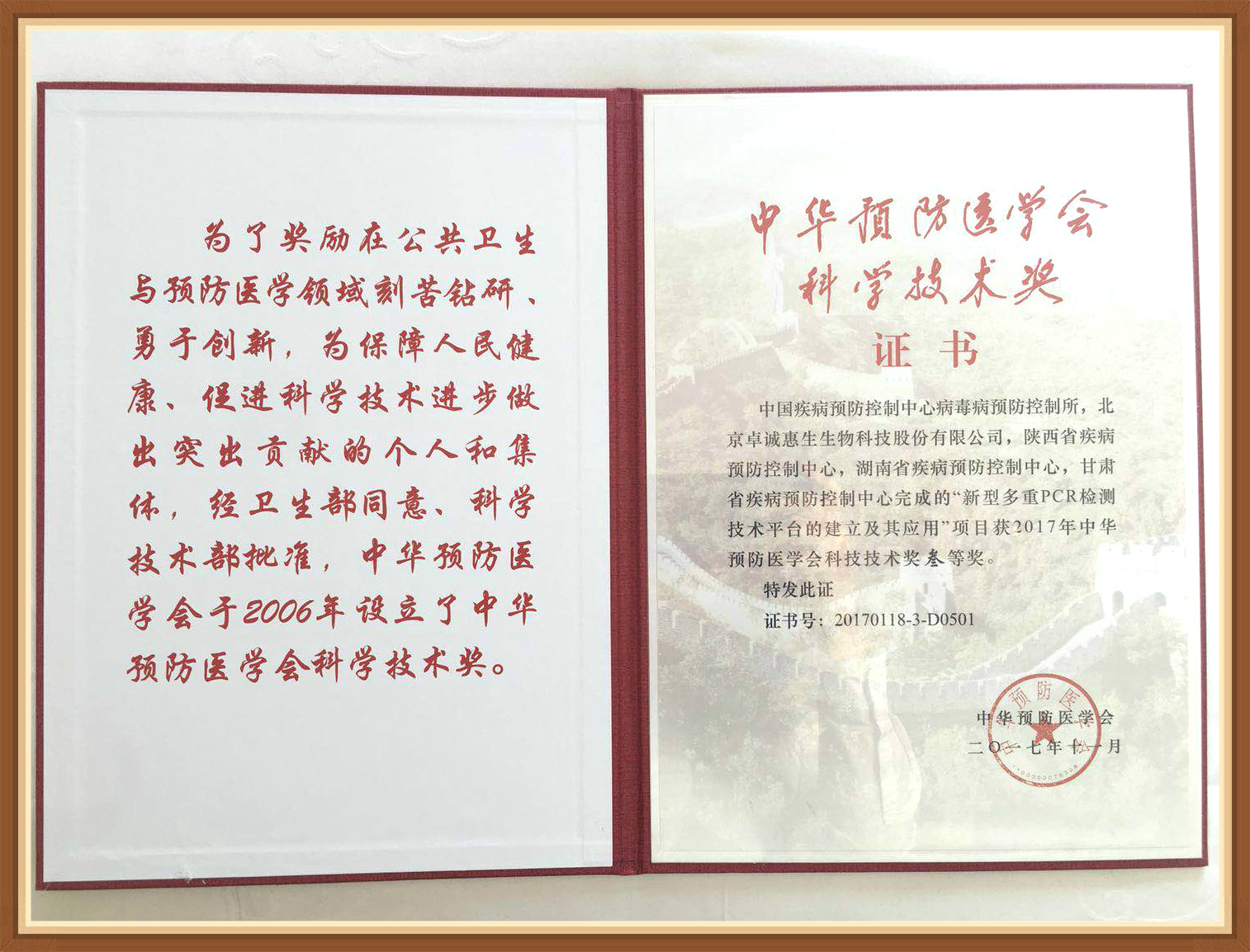 - 中華預(yù)防醫(yī)學(xué)會(huì)科學(xué)技術(shù)獎(jiǎng)一等獎(jiǎng)
